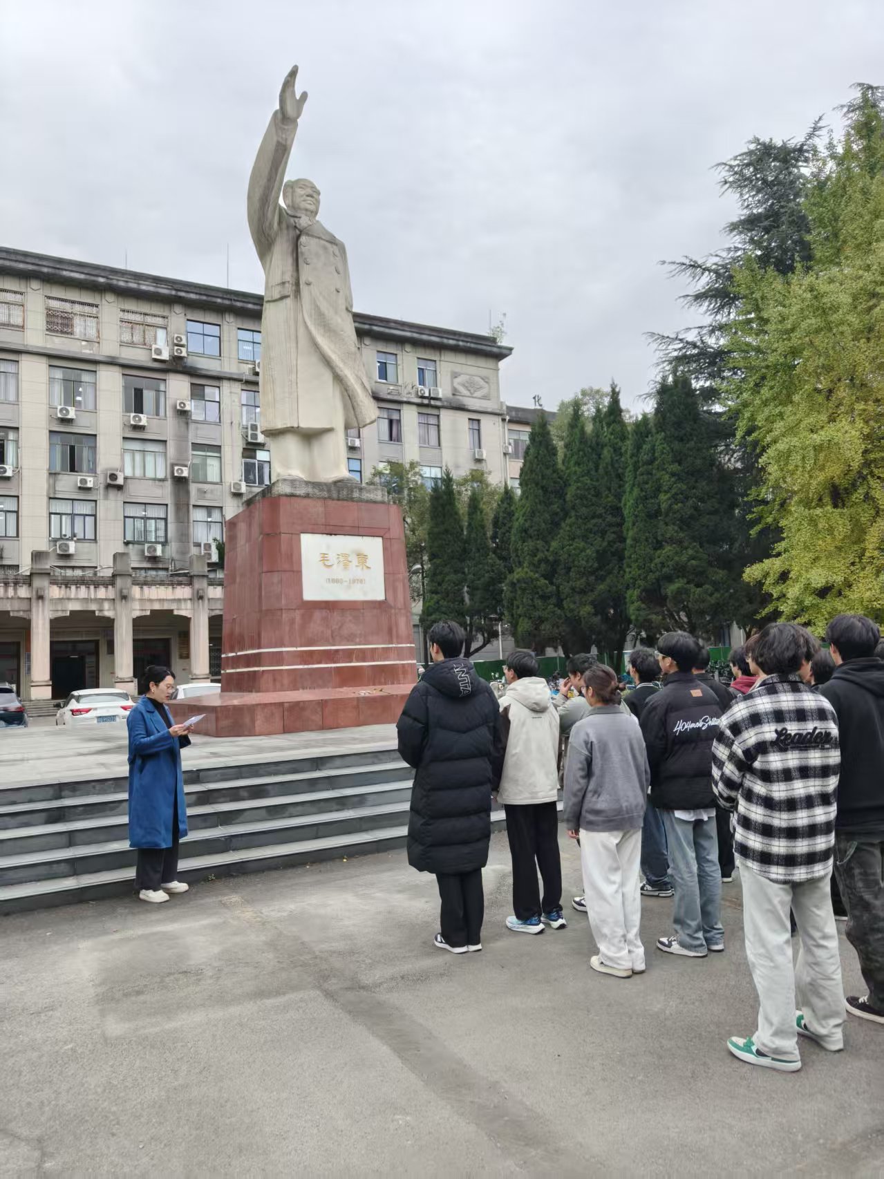 交流环节结束后,新生们开启了参观之旅。首先大家走进四川大学东区毛主席纪念像,新生们怀着崇敬的心情瞻仰纪念像,缅怀伟人功绩,在庄严的氛围中汲取奋进力量。