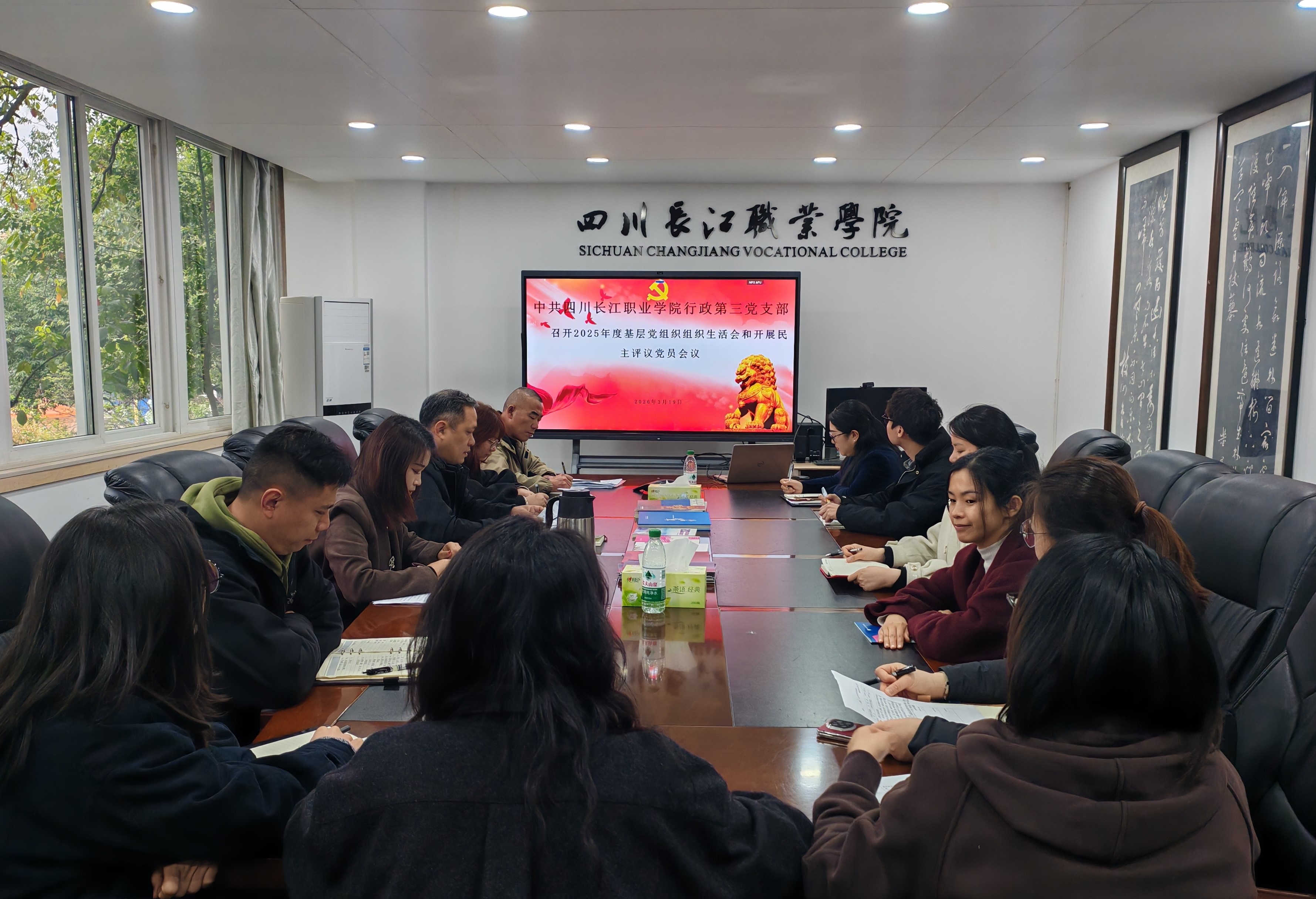 【本网消息】(高峰持续进修学院谭江供稿)2026年3月19日下午15时,按照《关于召开2025年度基层党组织组织生活会和开展民主评议党员的通知》、《四川长江职业学院关于开展树立和践行正确政绩观学习教育实施方案》等相关文件要求。行政第三党支部在行政楼206会议室召开2026年第一次基层党组织生活暨民主评议会。