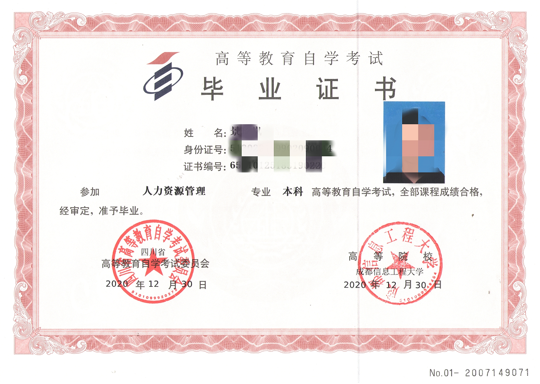 符合条件者可获得我校自考本科人力资源管理学历证书+职业技能等级证书+学士学位证书