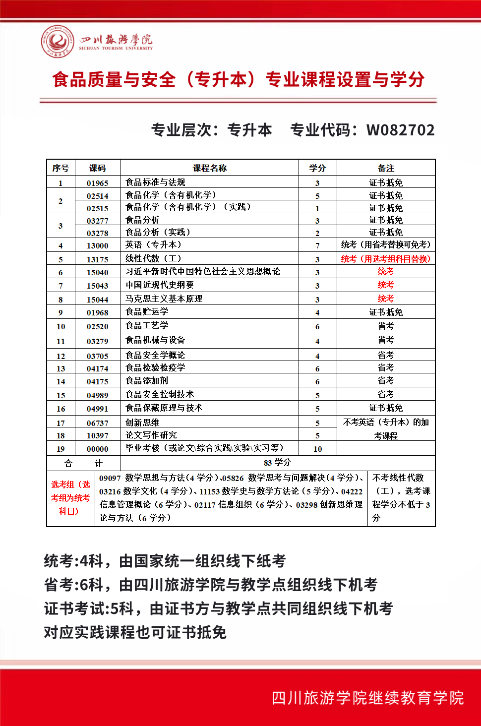 食品质量与安全1+X专业是四川旅游学院的热门专业