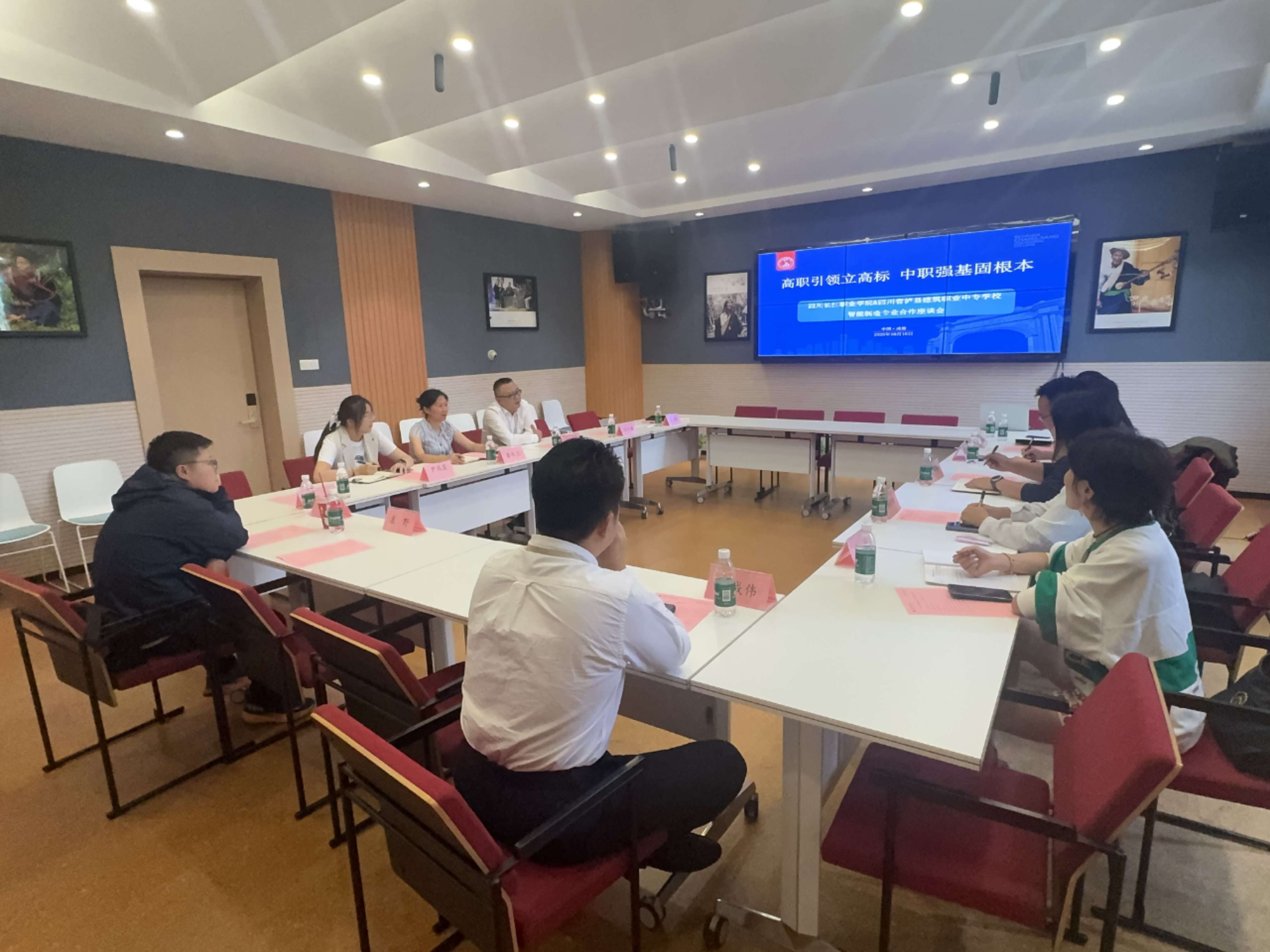 在四川省泸县建筑职业中专学校的交流中,双方共同观看了四川长江职业学院宣传片,并就无人机驾驶、工业机器人专业建设及第三方等级鉴定等展开深入探讨。潘刚副校长介绍了学院基本情况,陈德富校长则分享了泸县建筑职业中专的办学特色。四川瑾之瑜航空科技有限公司总经理谢智敏、海渡科技四川有限公司总经理任大鹏分别就航空科技、机器人产业学院建设与运营情况进行介绍,为校校企合作提供了新思路。