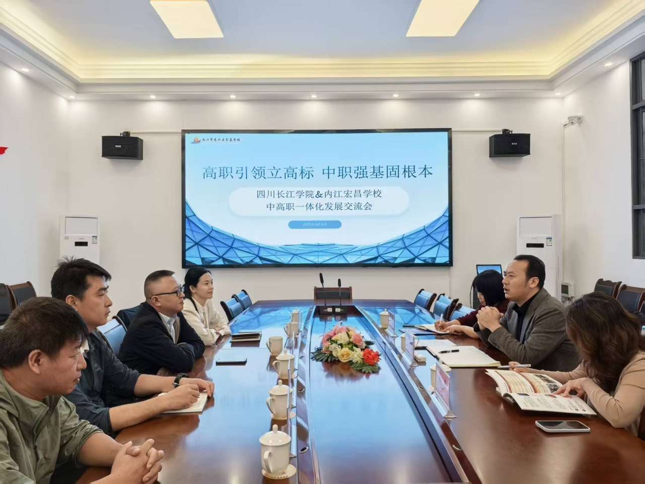 在内江市东兴区宏昌职业技术学校的交流中,双方延续了与前三校相同的合作流程,围绕中高职衔接、专业建设与技能鉴定等主题展开讨论,进一步扩大了合作范围,增强了区域职业教育的整体合力。